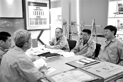 石钰劳模创新工作室成员正在研讨科技攻关项目