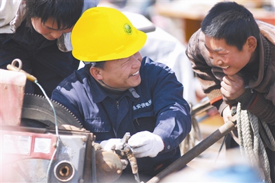 公司坚持“不停电就是最好的服务”,积极构建客户导向型大服务机制。图为义务帮助当地渔民检修用电设施