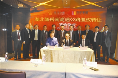 越秀集团董事长张招兴(后排中)、总经理朱春秀(前排中)参加随岳南高速签约仪式