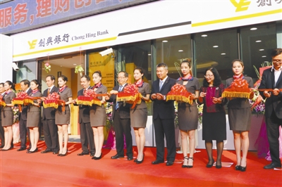 越秀集团张招兴董事长(右五)、朱春秀总经理(左四)参加创兴银行广州支行开业仪式
