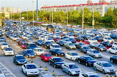 5月2日,车辆在京港澳高速公路石家庄裕华路口排队慢行。当日是“五一”假期的最后一天,全国各地迎来返程客流高峰。 新华社记者 朱旭东 摄