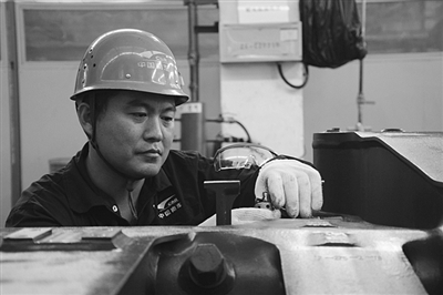 宁允展主动请缨,挑战这项难度极高的研磨技术。扎实的基本功加上夜以继日的潜心琢磨,仅用了一周,他就掌握了外方熟练工人需要数月才能掌握的技术,成为中国高铁转向架“定位臂”研磨第一人。