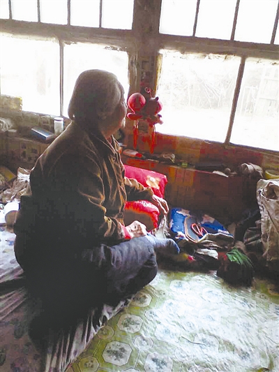 图为留守老人高翠芝。她每天都这样望着窗外,好像等待的人下一刻就会出现。