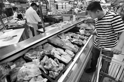 5月4日,武汉一家超市里,市民挑选猪肉产品。