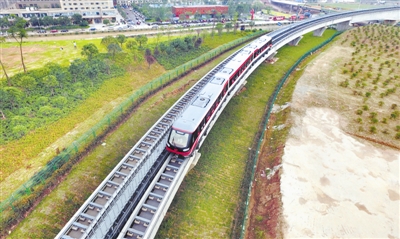 上线试运营的长沙磁浮快线(5月6日摄)。