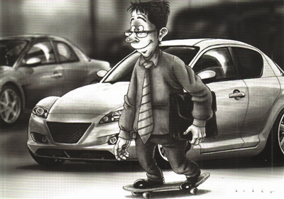 滚滚的车流导致道路堵塞,城市交通成了“上班族”出行大碍。此君脚踏滑板上路,既可轻松无阻到达职场又锻炼了体格。