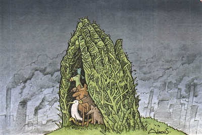 植树绿化改变环境已被人们认知,漫画歌颂了双手构建的“森林庇护所”。人与大自然和谐共处的受益者并非只是人类自己。【墨西哥】克莱门特