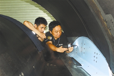 吴志巨正执行发动机铆钉工作