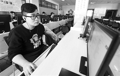 5月9日,在哈尔滨市残疾人网络培训就业基地,残疾人田野在工位上操作电脑。成年后的他找工作屡遭碰壁,2014年他在哈尔滨市残联就业中心参加了网络就业培训,找到了自己的人生方向。据介绍,该就业基地是哈尔滨市残联于2014年创建的,集技能培训、岗位实训、就业安置于一体。新华社记者 王建威 摄