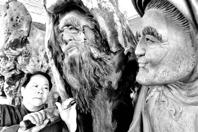 5月10日,江西省婺源县,国家级非物质文化遗产传承人俞有桂正在雕刻,枯枝烂蔸是他钟爱的原料。