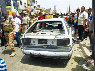 5月11日,在伊拉克巴格达东部萨德尔城,安全人员查看爆炸现场。