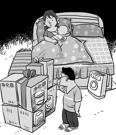 生了娃娃,按照国人约定俗成的习惯,亲属们送来的,应该是婴儿床、儿童车、玩具、婴儿衣服、营养品等。然而林女士收到的却是3台空气净化器,虽然从中不难看出亲友们的思维逻辑:家里添了小宝宝,最重要的事情就是孩子的健康,期待空气净化器能够减轻恶劣空气对孩子健康的影响。但它也映射出公众对不断袭来的雾霾等空气污染的担忧,对天蓝蓝、水清清、草绿绿的向往,对有关部门尽快改善环境质量的期许。这不是一个幽默的笑话,也让人笑不出来。