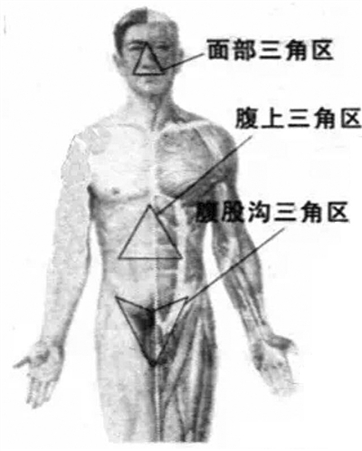 在人体的许多部位,可以勾画出多个三角区,这些区域集中了最重要的脏器、血管、神经、肌肉等器官。随着年龄增长,机体功能不断衰退,这些三角区会变得格外脆弱。如果不及时采取保护措施,就可能诱发多种疾病。在这些区域一旦出现肤色变化、肿胀、浮肿、发炎、疼痛、包块等病变,要及时到医院检查。