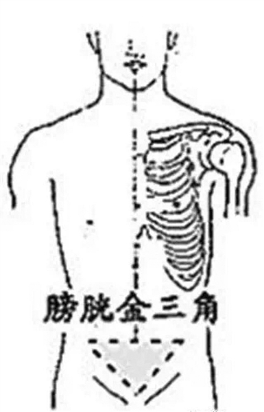 位于膀胱底部的一个平坦的三角区。该三角内有膀胱、输尿管、直肠、子宫和卵巢等器官。该三角区是腹壁最薄弱的地方。年龄大的人,以及吸烟、有慢性咳嗽或便秘,从事重体力劳动的人,有时会有肿块突出,卧位时消失,站立时再现,并有疼痛感觉,医学上称为疝气。