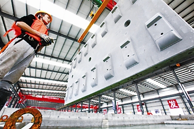 近日,经过反复核查与检测,有着先张法“西南第一板”美誉的中铁上海工程局成贵铁路一公司乐山制板场通过了国家工业产品生产许可认证审查,由此成为国内首家取得国家工业产品生产许可认证的制板场。图为作业人员将刚脱模的轨道板放入水池养护。