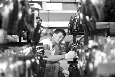 在浙江省临安市的奥特曼鞋业有限公司,该企业不断提高自主创新和研发能力,生产的各类雨鞋、胶鞋深受欧美客户青睐,年销售量50余万双。图为公司员工在生产销往法国的新款雨鞋。胡剑欢 摄