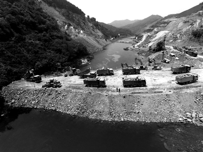 这是5月18日拍摄的瓦村水电站工程截流施工现场。