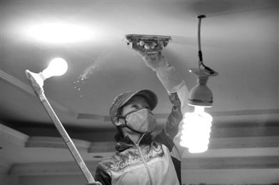 5月14日,辽宁沈阳,陈东华正在一处住宅刷墙。陈东华是一名装修大白工,十余年来,她用自己的“不糊弄”去完成每一个工程,有些雇主只相信她的手艺,宁可延误工期都非要等她做自己的工程。