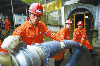 当日,四川省安监局在成都市大邑县举行“矿山井下及地面洪涝抢险排水演练”,以检验专业矿山抢险排水队伍对矿山矿井、城市内涝等险情的应急处置能力和协同配合水平。 新华社记者 薛玉斌 摄