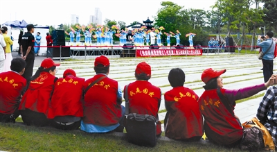 5月28日园博园闭园前,为了表达敬意,武汉市仪朋潮俱乐部的演员们专程来到园博园,义务为50名“园长”进行精彩的慰问演出。 本报记者 于文国 摄