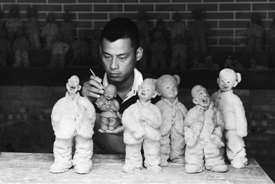 5月18日,河南浚县杨玘屯村国家级非物质文化遗产传承人宋庆春在家中的工作室制作泥塑。目前,杨玘屯村有过半村民从事泥咕咕产业。