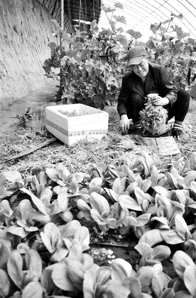 5月23日,呼和浩特市赛罕区绿联专业合作社的种植户在采摘蔬菜。