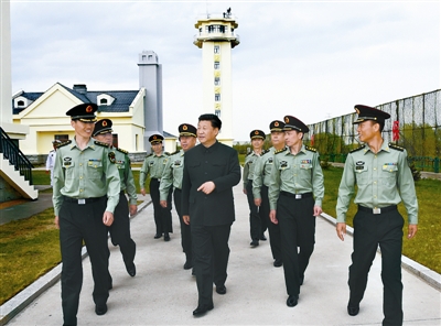 随后,习近平步行前往东极哨所。该哨所被誉为“东方第一哨”,是每天最早把太阳迎进祖国的地方。习近平登上30米高的哨楼,察看执勤设施,询问执勤情况,同正在执勤的哨兵交谈。哨兵刘威自豪地说,驻守在祖国的最东方,很神圣,请主席放心,我们一定为祖国站好岗、放好哨。看到哨兵们精神饱满、劲头十足,习近平十分欣慰,他在观察情况综合登记本上签下自己的名字,并同两名哨兵合影,对他们说,党中央和中央军委一直惦念着你们,大家辛苦了。