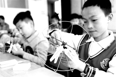 近日,重庆梁平县科协、县教委在力帆光彩小学举办2016年春季青少年科技模型大赛。全县中小学校的700多名留守儿童参加了体感飞行器、“闪电”橡筋飞机、太阳能动力模型车现场组装以及操作三个项目的比赛,过足了“科技瘾”。图为一名学生在组装体感飞行器。