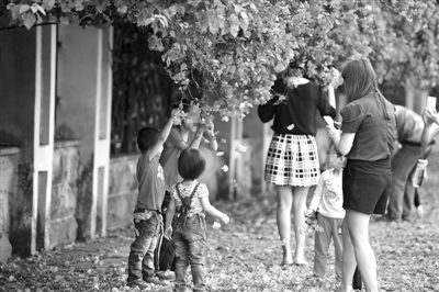 2016年4月 23日,广西南宁市,青环路上的三角梅正值繁盛花期,周末吸引了不少市民和游人观赏。但一些游人在拍照时竟然对三角梅施展“黯然销魂掌”,不停晃动树枝,营造花瓣飘落的景象。东方IC 供图