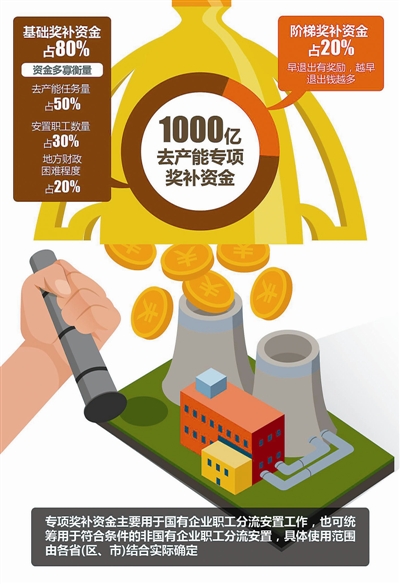 财政部日前印发的《工业企业结构调整专项奖补资金管理办法》,明确去产能职工的安置措施和奖补资金的分配管理办法。中央财政已拨付2016年工业企业结构调整专项奖补资金276.43亿元,以支持地方化解钢铁煤炭行业过剩产能。