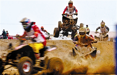 日前,2016中国全地形车锦标赛东营站暨国际邀请赛在山东省东营市举行。比赛吸引了来自全国各地的33支车队100多位赛车手参赛。图为比赛现场。