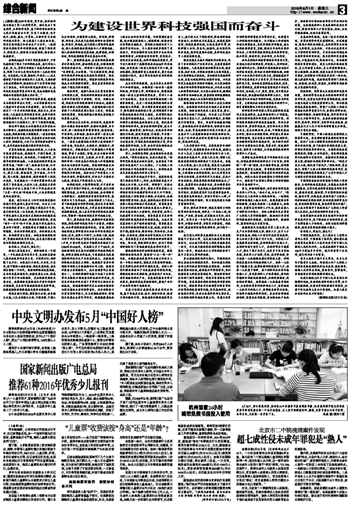 31日在京举办的2016年全国优秀少儿报刊推荐新闻发布会上,2016年全国优秀少儿报刊名单发布。其中,报纸、综合类期刊22种,低幼、科普类期刊19种,动漫、文学类期刊18种,少数民族报纸1种,盲文期刊1种。这些优秀少儿报刊体现出内容和形式创新,实现了导向性、艺术性、趣味性、科学性的有机统一,代表了我国少儿报刊最高水平。