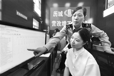 5月30日,济南市历城区国税局“营改增”专家杜新(后)对纳税人进行增值税申报流程指导。营业税改征增值税改革自5月1日在全国全面推开后,将于6月1日迎来纳税申报期。