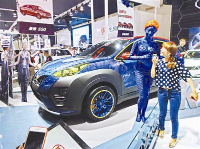 5月28日,武汉,为期五天的第十四届华中国际车展在武汉举行,近80个汽车品牌携40余款新车亮相。为吸引消费者购买好车,参展商在展台上,把酷车与电影《X战警》魔形女的车模,打扮得炫燿夺目,吸引了众多观众的眼球。 视觉中国 供图