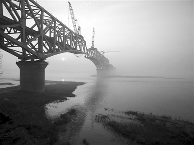 这座特大桥全长5597米,总用钢量1.26万吨。其双主桁下弦变桁高结构在我国钢桥梁建设史上尚属首次采用,主跨跨度224米位居亚洲同类型钢桁连续梁之首,技术难度非同一般。