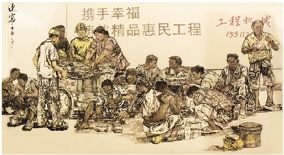 作为工人阶级的有机组成部分,农民工及其生活状态被画家广泛关注。以孔紫老师的《速写·午餐》为例,该画描绘了十数个正在吃饭的农民工,他们在劳动的间隙席地而坐,全然不顾环境的简陋。条件的艰苦、身心的疲惫,于农民工来说,算不得什么。和几十年前的工人一样,他们懂得知足,也充满干劲,画作也同样传递着劳动的价值和劳动之美。