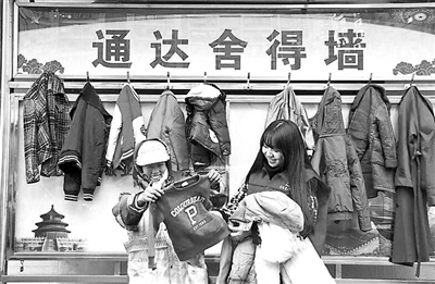 与此同时,三面舍得墙上挂着的衣服也迅速被取走,工作人员每天三四次添补,都难免捉襟见肘。最多的时候,一天有200件衣物被取走。