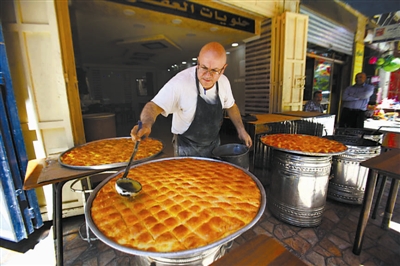 6月6日,在约旦河西岸城市纳布卢斯,一名巴勒斯坦男子在斋月的第一天制作甜点。斋月是指伊斯兰历的9月。按照伊斯兰教义的要求,斋月里穆斯林需要封斋,每天从日出到日落期间禁止饮食。 新华社发 (尼达尔 摄)