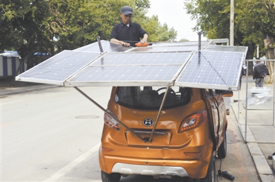 柳绿荫说,这辆车不是汽车,是电动代步车。他并没有改变车自身出厂的设置,只是在光能转化和动力输入衔接上做了功课。