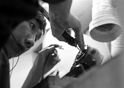 6月6日,在阜新杨记玛瑙有限公司生产车间,工人在雕刻玛瑙工艺品。