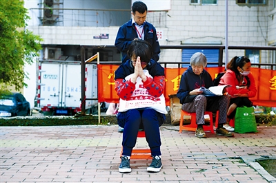 图3:6月8日,吉林长春。在考场外的陪考家长念佛祷告。视觉中国 供图