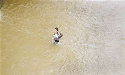 中图及本版底图:6月4日,美国得克萨斯州假日湖镇,民众在洪水中艰难前行。得克萨斯州部分地区由于此前的暴雨被洪水淹没。东方IC供图