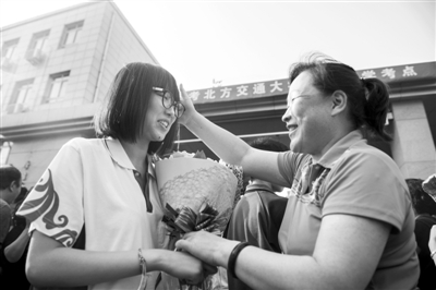 高考结束后 , 冯时的妈妈为女儿送上鲜花 。