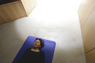4月26日中午,一家云计算公司的员工在办公室练习瑜伽。