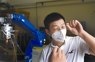 东莞华中科技大学制造工程研究院的研究人员在实验室里调试3D打印机(6月7日摄)。