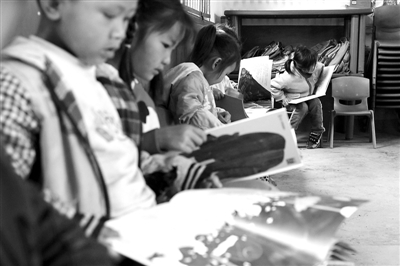 5月23日,贵州一所留守儿童爱心幼儿园里,孩子们在看一家阅读机构捐赠的经典儿童绘本。吴凡摄