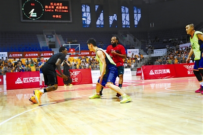 6月12日,匹克签约球星、NBA湖人队后卫,前最佳第六人路易斯·威廉姆斯为期6天的中国行收官。此次中国行以“场上见”为活动主题,分别到访了北京、运城、邢台三城。这也是匹克连续第十一年把旗下签约NBA球星带到中国。图为路易斯·威廉姆斯(左一)兴致勃勃地与球迷进行比赛。刘君 摄