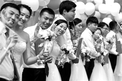 当日,河北石家庄举办外来务工人员公益集体婚礼,来自各个行业的24对新人携手走进婚姻殿堂。