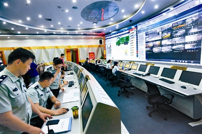 6月14日,在武汉市城管委监督指挥中心,城管工作人员正在调试渣土车智能管控系统。