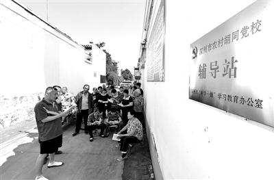 在“两学一做”专题教育中,河北省深州市创新实施农村党员教育新形式,以农村街头、农民炕头为阵地,建立“胡同党校”,由老党员、老干部、优秀村党支部书记、大学生村官等担任义务宣传员,利用闲暇时间,用大白话、家乡语对农村党员进行教育。